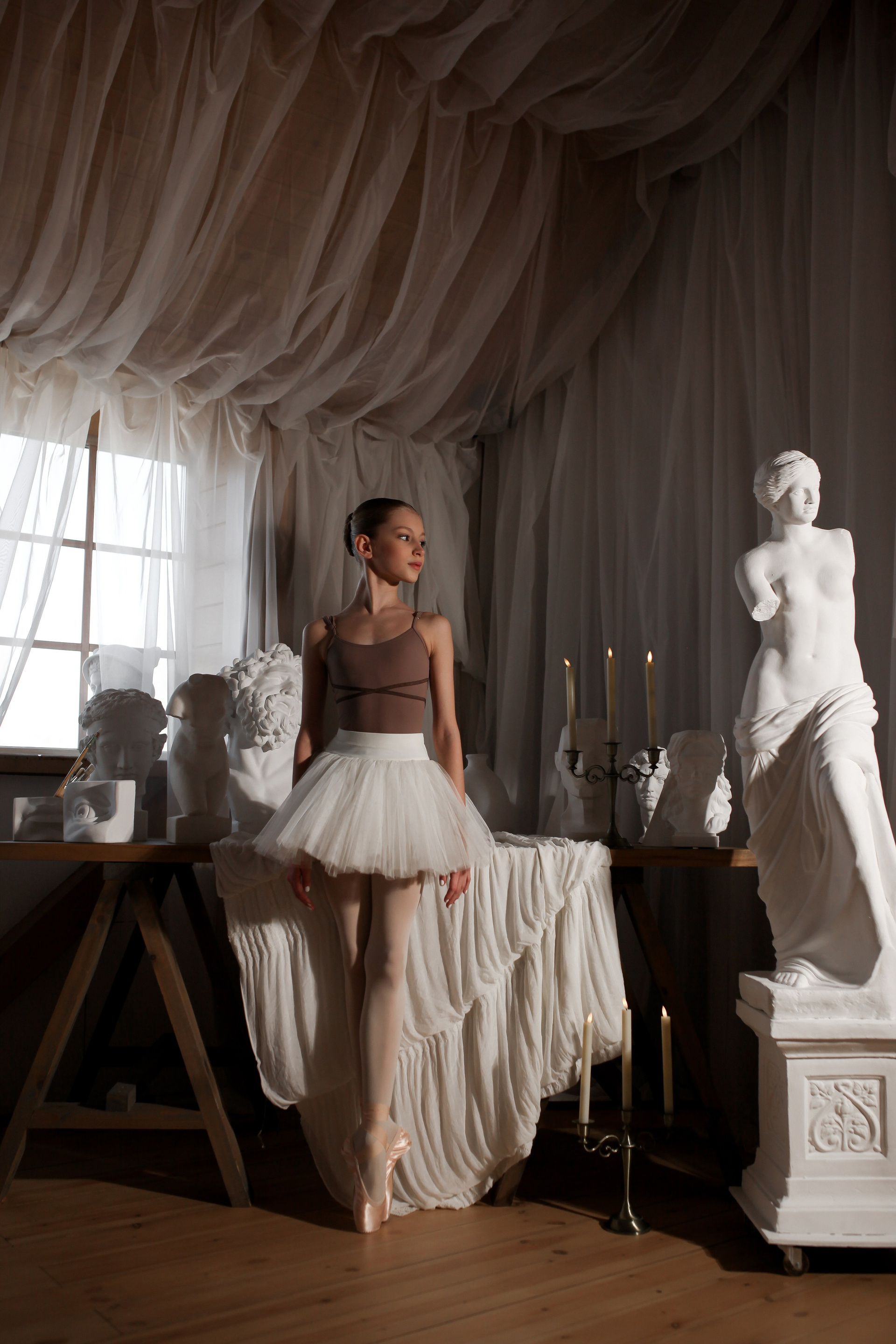 - Студийная сьемка: чистый, мощный свет, который подчеркивает каждую мышцу и идеальную линию, будь то классический балет или современная гимнастика.
